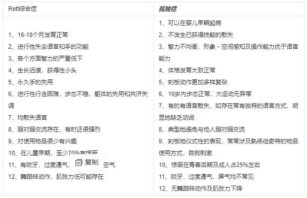 孤独症与Rett综合征的鉴别: